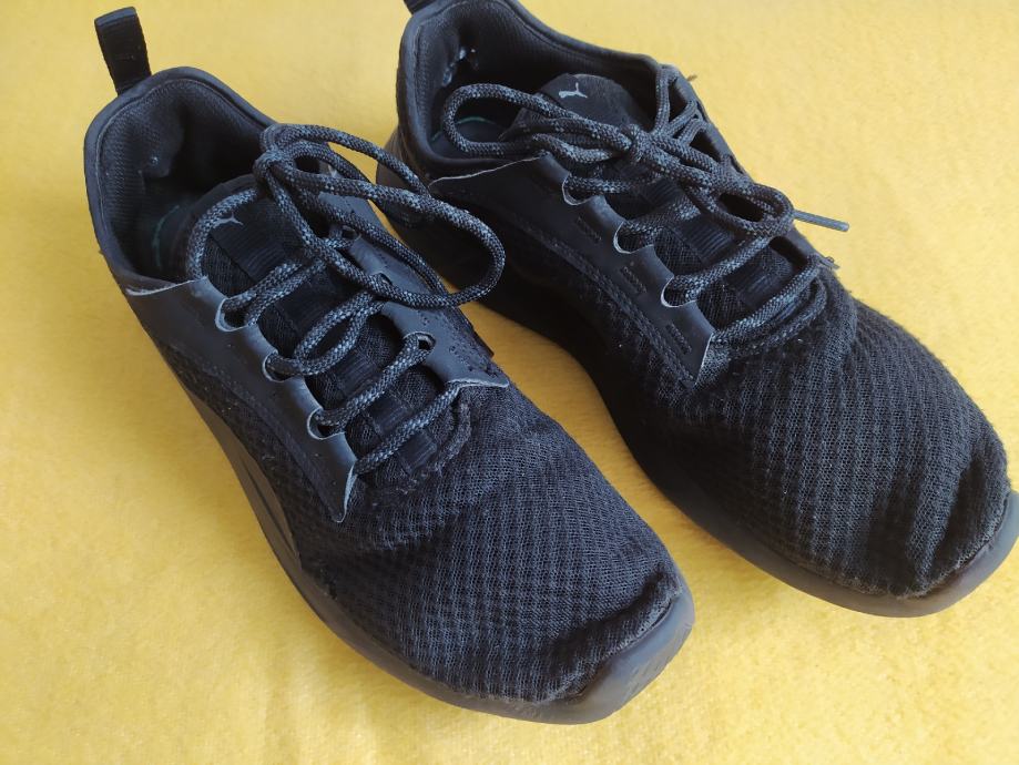Tenisice muške "Puma" br 43. Crne boje s crnim puma znakom, crna unutrašnjost, crnim vezicama. Gornjište je od gume/textila, unutarnji dio je textil, tabanica guma.. Jako lagane, udobne, prozračne, odlične za ljeto, proljeće. Odlične kao nove.