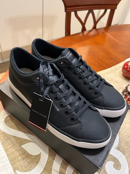 Potpuno nove plave kožne Tommy Hilfiger tenisice veličine 42, još s etiketom. Elegantnog su dizajna s prepoznatljivim Tommy Hilfiger logom, idealne za svakodnevno nošenje. Izrađene su od visokokvalitetne kože koja osigurava udobnost i dugotrajnost.