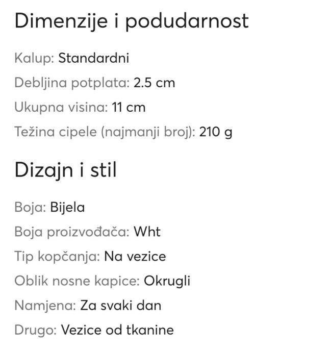 Tenisice su potpuno nove samo jednom isprobane u šetnji. Vidi se originalna cijena i njihov sastav gore u galeriji. Broj je 45 (29 cm ) tako piše ali mislim da su 44 (28 cm).