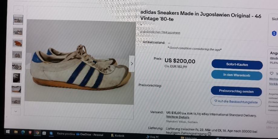 VINTAGE TENISICE "ADIDAS" MADE IN YUGOSLAVIA.VELIČINA 42 2/3-DOBRO STA