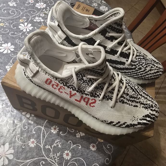 Prodajem Adidas Yeezy Boost 350 tenisice u veličini 39.5, potpuno nove s etiketom. Tenisice dolaze u originalnoj kutiji i nikada nisu nošene. Karakterističan dizajn s prepoznatljivim zebra uzorkom i crvenim detaljima na bočnoj strani. Boost tehnologija u đonu pruža vrhunsku udobnost pri nošenju.