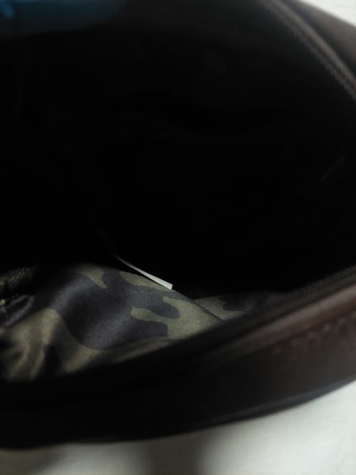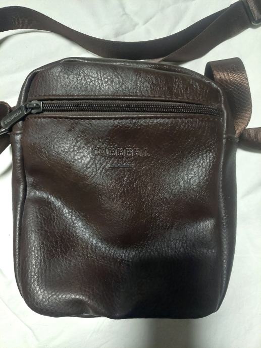 Prodajem Carrera torbicu u tamno smeđoj boji, stanje novo bez etikete. Radi se o manjoj torbici za nošenje preko ramena, izrađenoj od eko kože teksturirane površine. Ima prednji džep na zip te glavni pretinac koji se zatvara patentom. Podesivi naramenica od najlonske trake omogućuje ugodno nošenje. Unutrašnjost je obložena maskirnom podstavom.