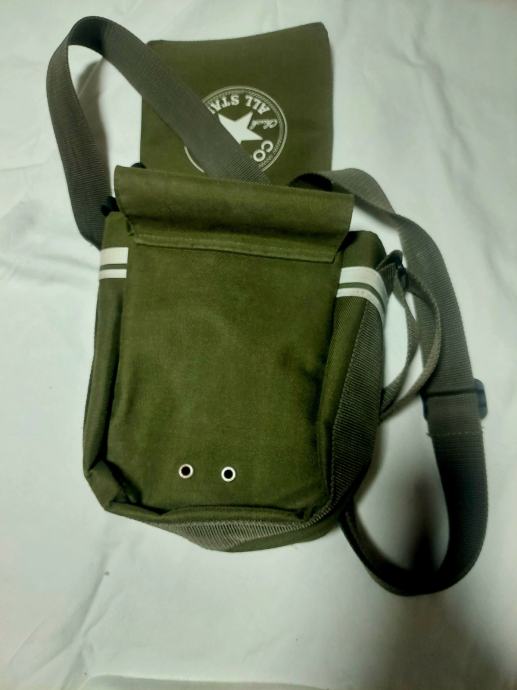 Prodajem Converse All Star torbicu za nošenje preko ramena u maslinasto zelenoj boji. Torbica ima prepoznatljivi Chuck Taylor All Star logo na prednjoj strani te bijele pruge na bočnom dijelu. Izrađena je od tekstilnog materijala, s podesivim naramenicom i metalnim rupicama na prednjem džepu. Kompaktnih je dimenzija, praktična za svakodnevno nošenje.