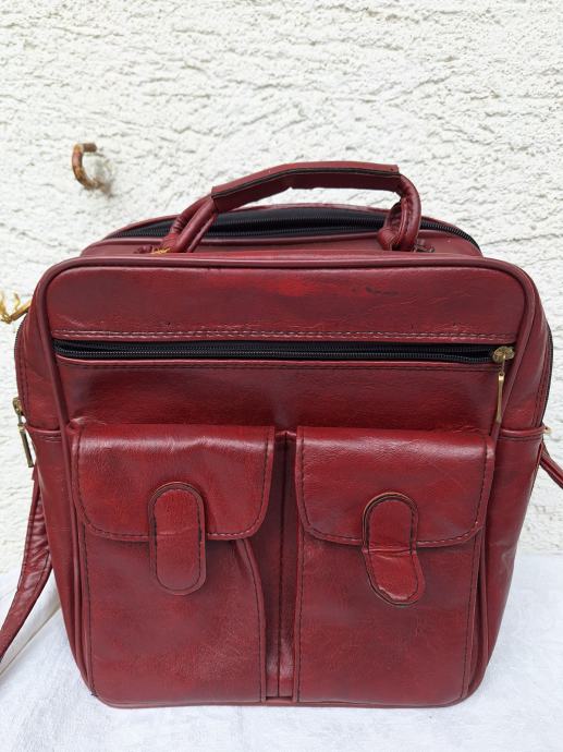 EHD muška kežual torbica od umjetne kože lak bordo boje visina 32 cm- širina 30 cm- dubina dna 12 cm- 2 veća prostora i jedan nešto niži na cif, dva džepa vani.....uredna, nije oštećen lak, nema tragova korištenja...........pogledajte i ostale moje oglase