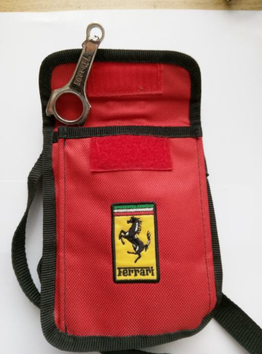 Ferrari akreditacijska torbica za ulazak u boksove (i na prezentaciju modela)otprije neznam..100 godina...plus privjesak na slici za na remen ili oko pasa ili preko ramena .podesivoTorbica je Limited edition 2004 godina.Nnije KORIŠTENA osim jednom nema tragova.Privjesak je KORIŠTEN.Model na slikama F 50 iz 1995 je mjerilo 1:24 stanje vidljivo bez ogrebotine bez kutije izvađen iz vitrine. trošak dostave je na ev.kupcu.Dakle sve na slikama-100 e..