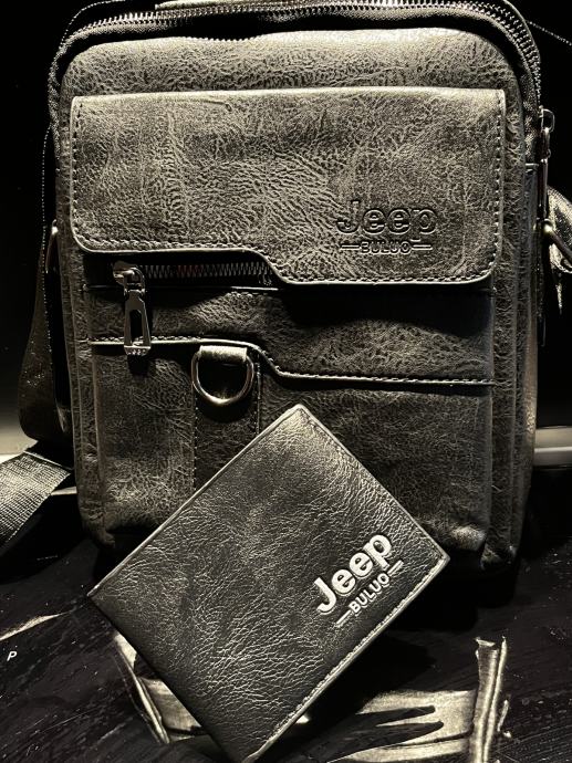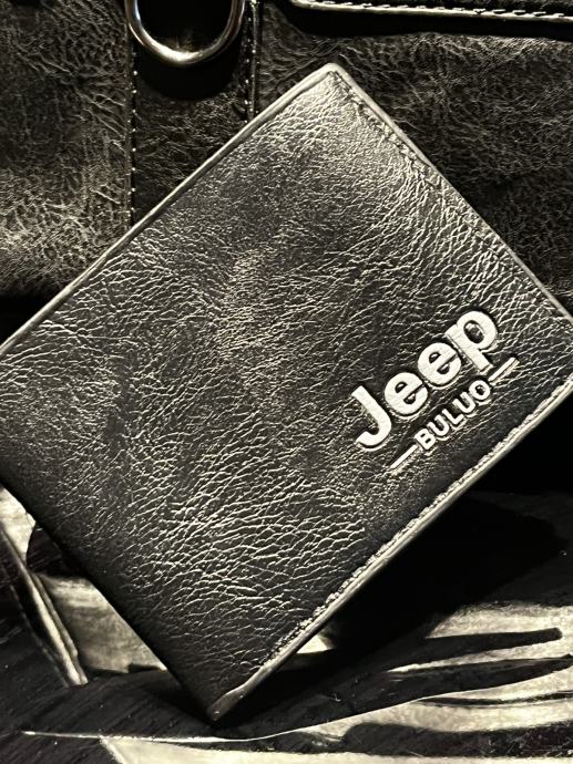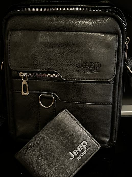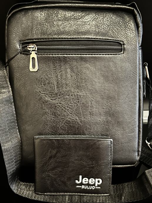Jeep - KOŽNA VRHUNSKA TORBICA ZA RUKU / RAME ( CRNA ) + ETUI ZA KARTIC