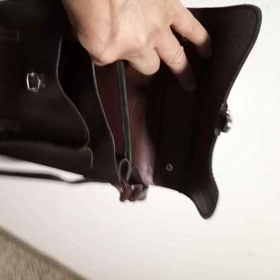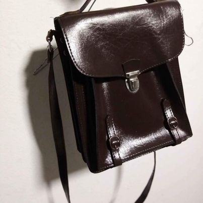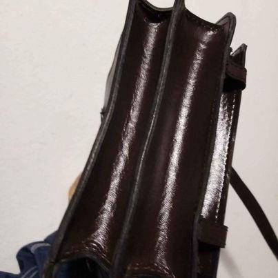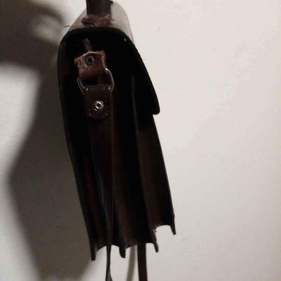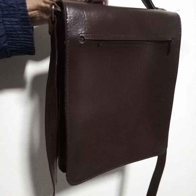 Kožna torbica sa pretincima može se nositi u ruci ili na ramenu vanjska dim 25x20x10 cm, cijena 20 eura