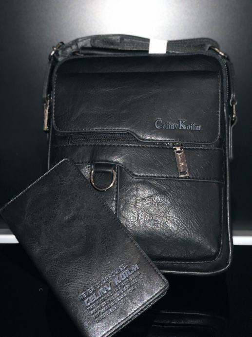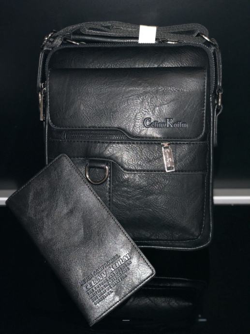 KOŽNA TORBA +ETUI ZA KARTICE LUKSUZNA- CRNA LARGE