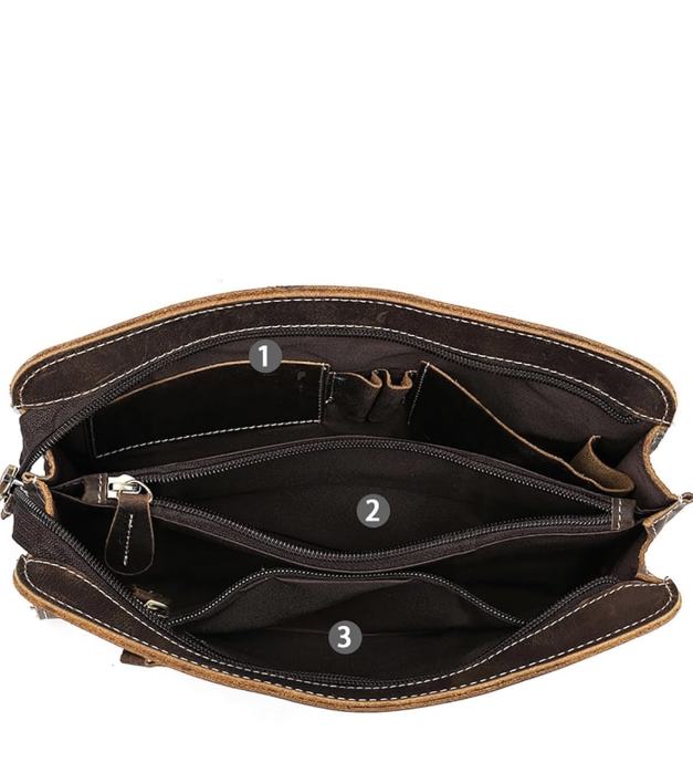 Nova muška kožna torba sa dosta pretinaca, idealno za one koji nose vise elektronickih uredaja, punjaca i slicno.