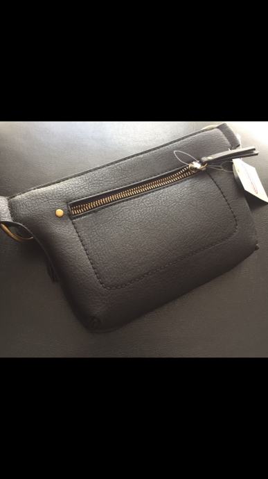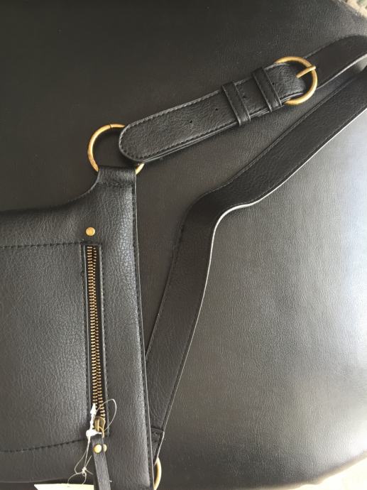 Muška crna efektna kožna torbica za nošenje oko struka i preko ramena po želji..pretinci sa cifom..vrlo kvalitetna čvrsta eko koža ...potpuno nova,nenošena!