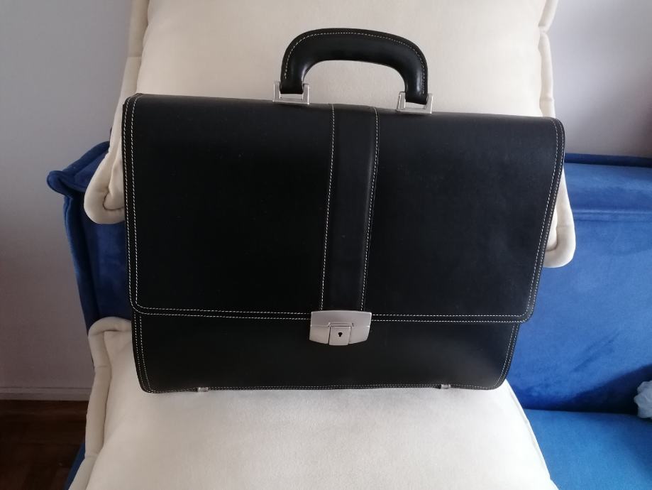 Nova kožna crna muška poslovna torba vel.visina 33 cm,širina 41 cm i prazna sa strane dubina 10 cm.Vrlo je lijepa i ima puno pretinaca .