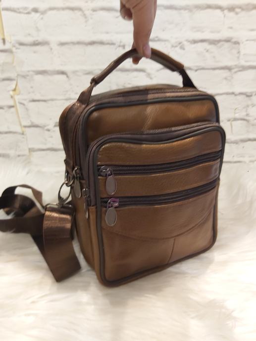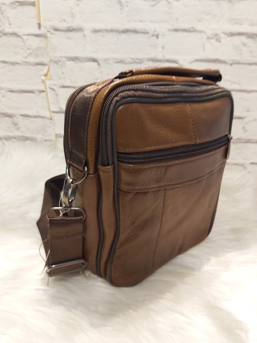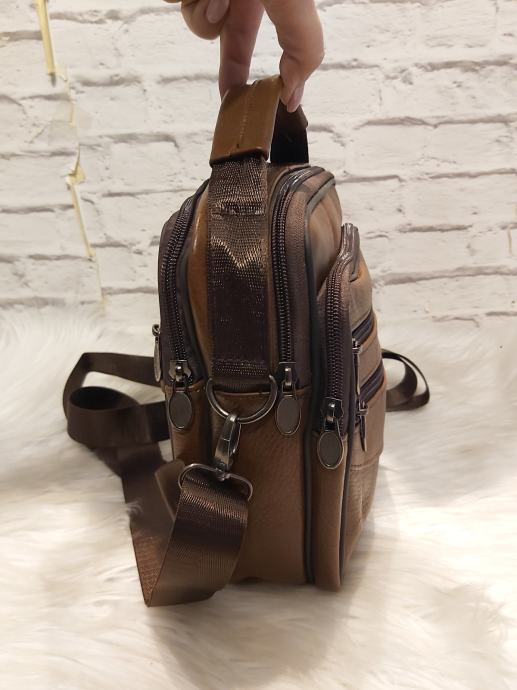 Ova muška torba dimenzije je 20x23x9cm-.Nosi se preko ramena ili preko tijela. Sa stražnje strane torbe nalaze se 2 džep na zatvarač te s prednje strane 3 džepa. Zatvara se pomoću zatvarača.