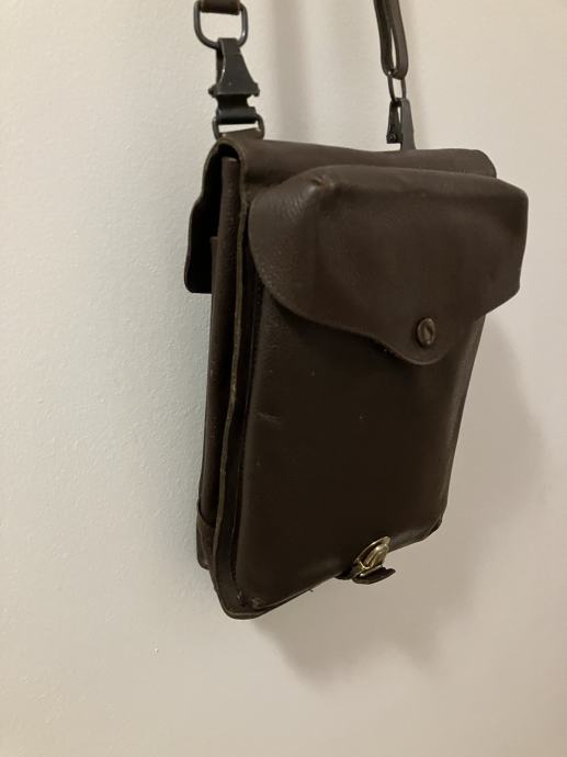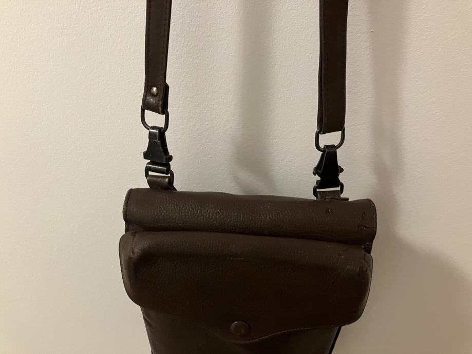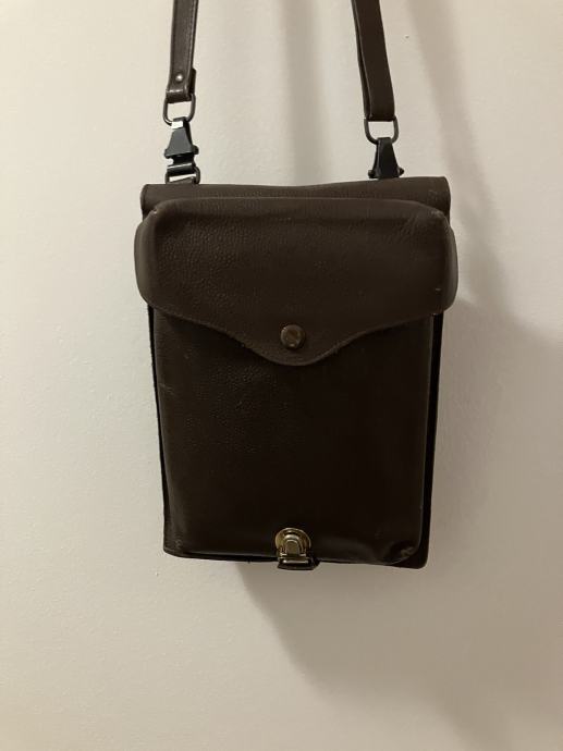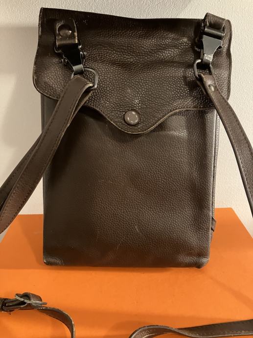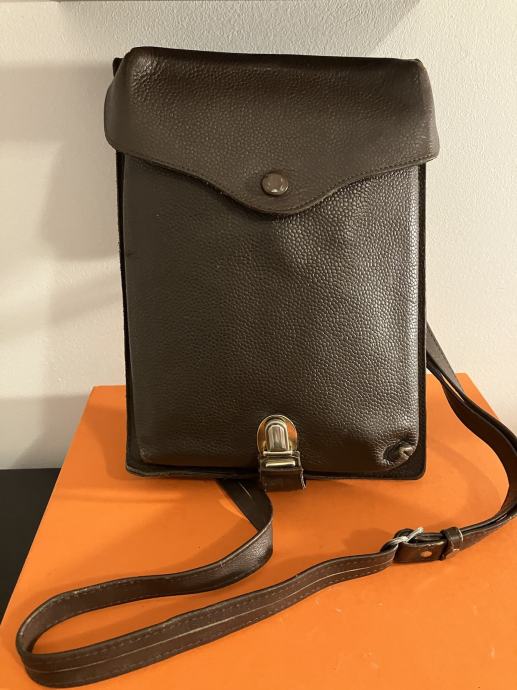 Muška vintage kožna torbica / JNA vojna oficirska. Sa podesivim kožnim remenom. Vanjske dimenzije 28 cm x 20 cm.