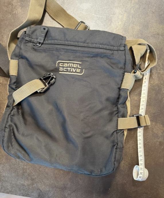 Prodajem mušku torbu za preko ramena marke Camel Active. Torba je izrađena od čvrstog tekstilnog materijala u tamno sivoj boji. Podesivi remen omogućuje nošenje preko ramena. Dimenzije su vidljive na fotografijama s mjernom trakom, a radi se o torbi srednje veličine, praktičnoj za svakodnevno nošenje.