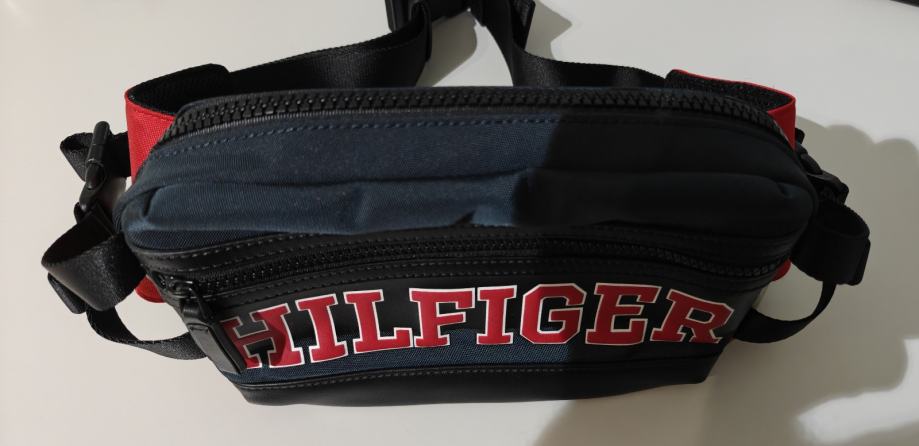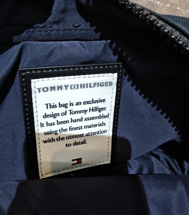 Elegantna muška torbica marke Tommy Hilfiger u tamno plavoj boji s prepoznatljivim crvenim logotipom, potpuno nova, nikad korištena. Kupljena online na offical Tommy Hilfiger stranici. Praktična za svakodnevnu upotrebu jer ima više pretinaca, te ima podesivi remen.