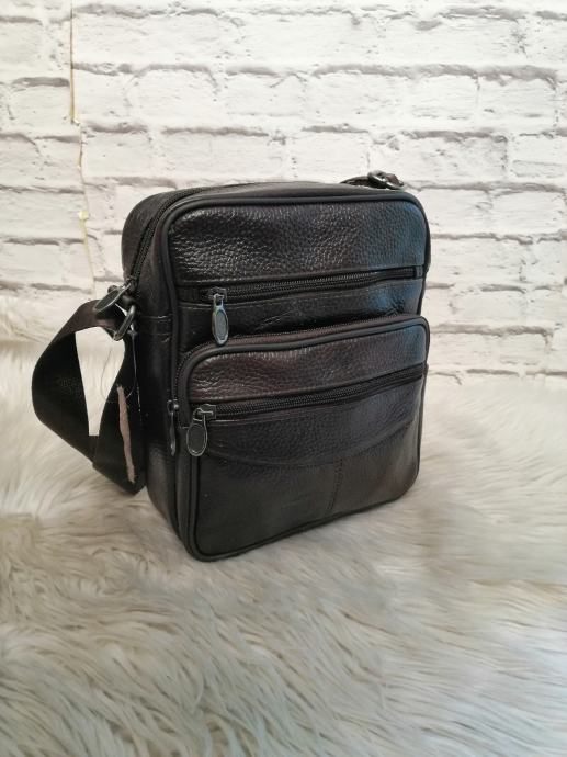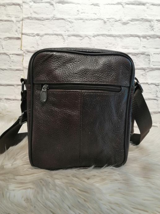 Ova muška torba dimenzije je 21x23x8cm- Nosi se preko ramena ili preko tijela. Torba osim glavnog pretinca ima bočni džep. Sa stražnje strane torbe nalazi se džep na zatvarač te s prednje strane dva džepa. Zatvara se pomoću zatvarača.