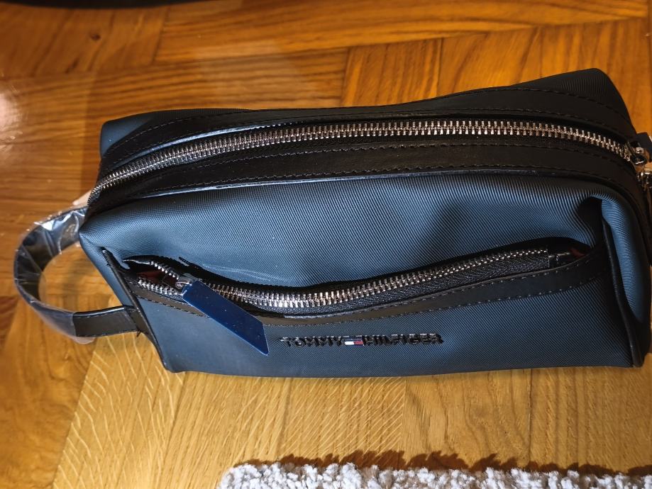 Nova Tommy Hilfiger muška torbica tamno plave boje s prepoznatljivim logom brenda, još uvijek s etiketom. Elegantnog dizajna s kvalitetnim patent zatvaračima i praktičnim pretincima, savršena je za svakodnevnu uporabu. Nikad nije korištena i dolazi u originalnom stanju, idealna za poklon ili osobnu upotrebu.