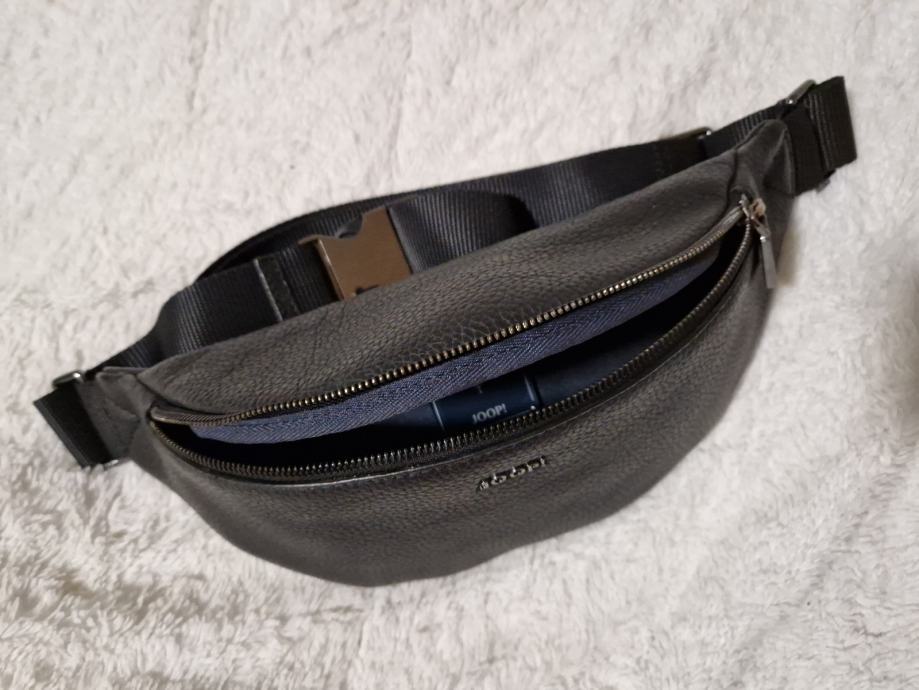 Elegantna JOOP torba oko struka izrađena od kvalitetne crne kože, potpuno nova bez etikete. Praktičan i moderan dizajn s prepoznatljivim JOOP logom čini je savršenim modnim dodatkom za svaku priliku.