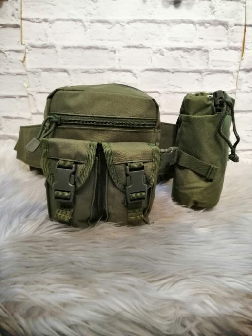 Ova pojasna torbica nosi se oko struka, praktična je i zgodna jer ju je jednostavno nositi, ruke su slobodne, a ramena i leđa nisu opterećena. Torbica osim glavnog pretinca ima i bočni džep.Sa prednje strane ima 3 džepića. Torbica se zatvaraju pomoću zatvarača i ima dodatak za nošenje bočice.Pojasni remen je na regulaciju.