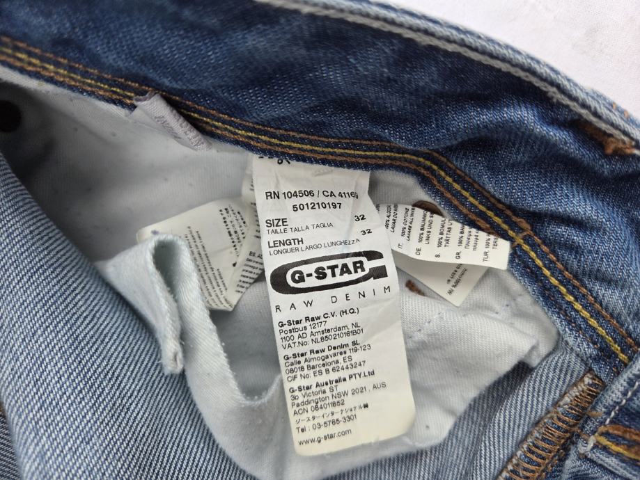 G Star Raw muške jeans hlače made in India original veličina W32- L32 sa mjerama- opseg u struku vodoravna mjera blago zategnute 46 cm, opseg mjereno u krug sa krojačkim metrom blago zategnute 95 cm, visina hlača 108 cm, donji otvor nogavica R- 19 cm, 100% pamuk.....uredne, nisu izlizane na osjetljivim mjestima..fiksna cijena...pogledajte i ostale moje oglase