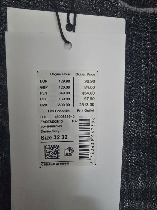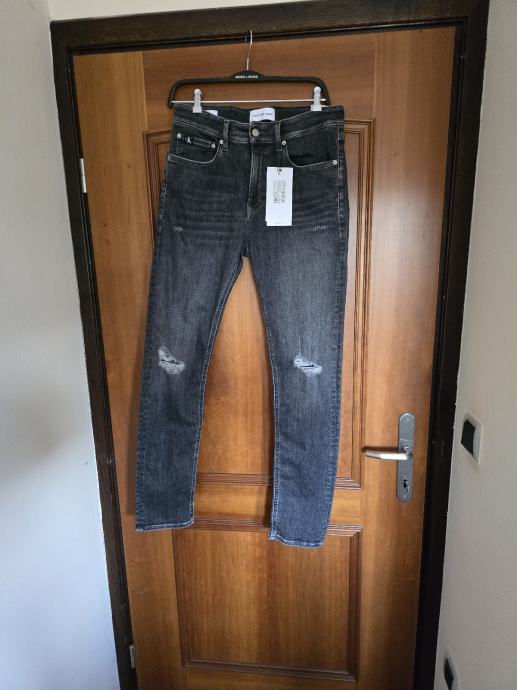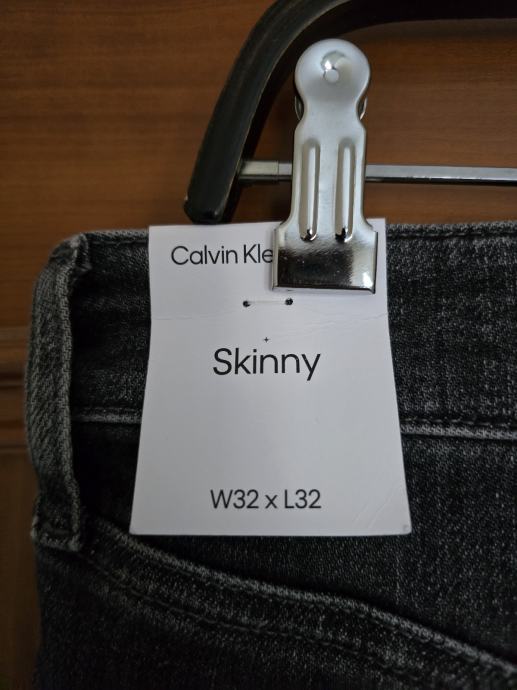 Calvin Klein nove muške tamnosive traperice veličina W32 L32, skinny model. Struk 39cm, bokovi 50cm, dužina nogavice 114cm, duljina unutarnje nogavice 79cm. 94% pamuk, 4% elastomuliester, 2% elastin.