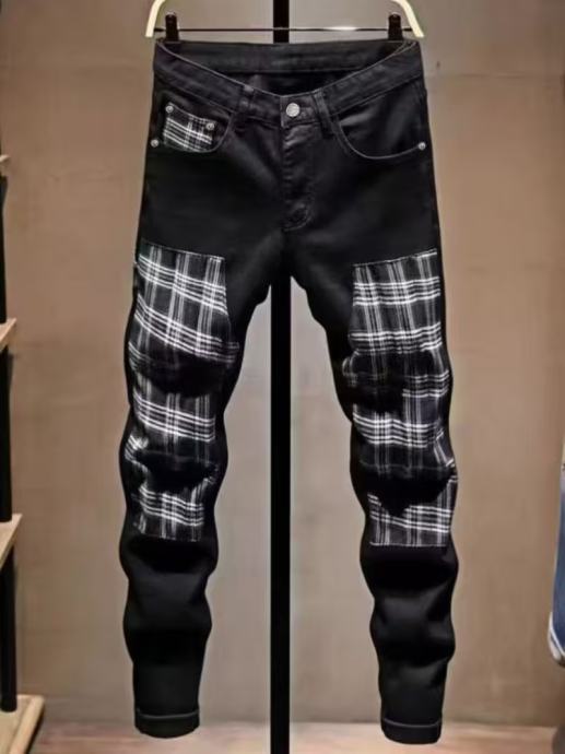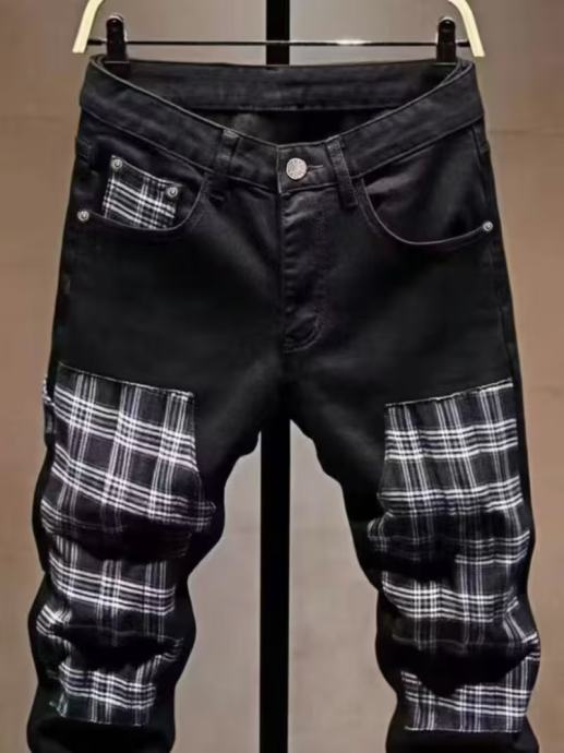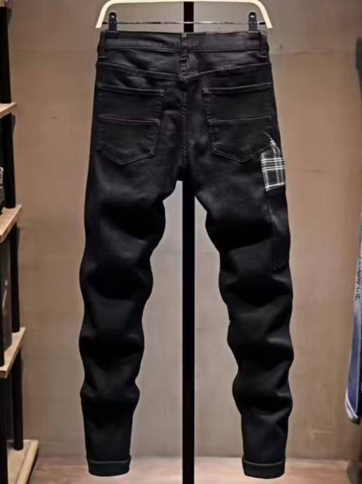 Nove muške crne traperice za jesen i zimu, trendi brend s buntovnim stilom, s zakrpama i uskim krojem.