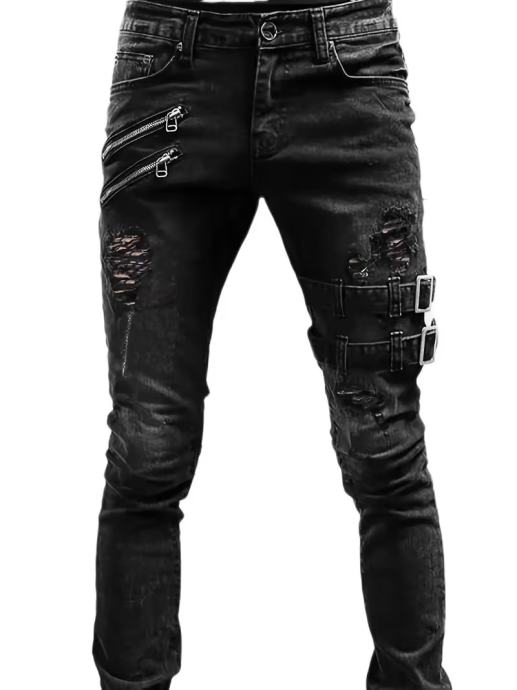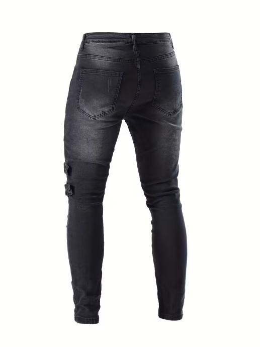 Muške ležerne uske bajkerske traperice, šik ulični stil, srednje rastezljive traperice