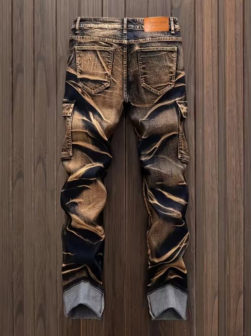 Muške rastezljive traperice - Ravne, uske rastezljive traperice | Ležerne radne traperice | Nepravilne višeuzorne traperice s pranjem | Muške izdržljive hlače | Pogodne za sva godišnja doba |
