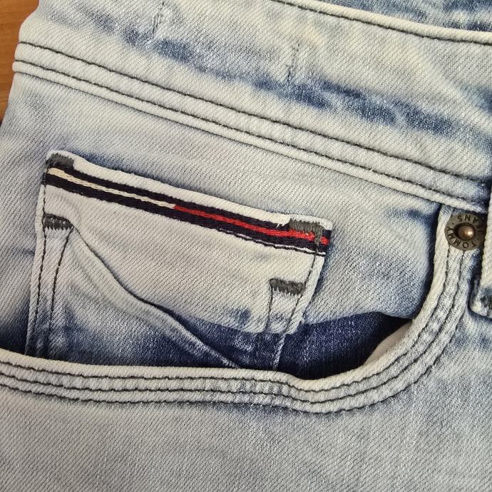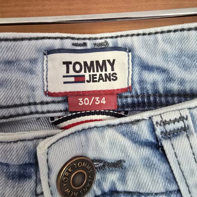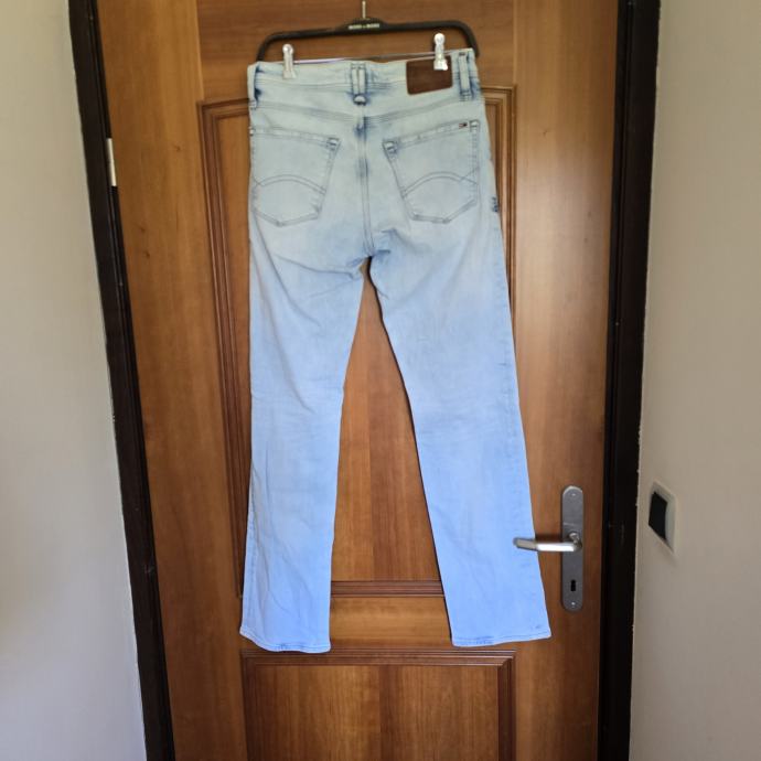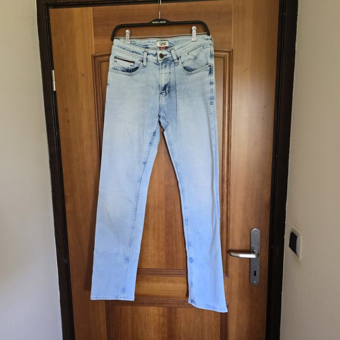 Svijetloplave muške Tommy Hilfiger traperice veličina W30 L34, model Ryan, straight, ravan kroj. 99% pamuk, 1% elastin. Struk 37cm, bokovi 50cm, dužina nogavice 109cm, duljina unutarnje nogavice 82cm.