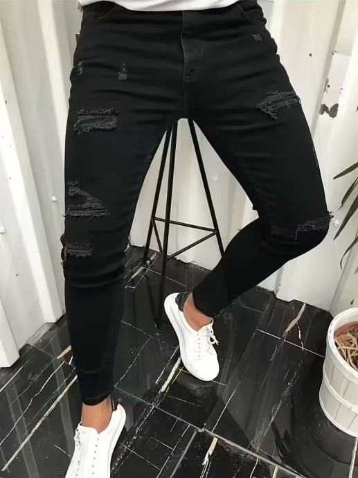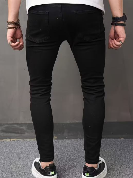 Uske rastezljive traperice za muškarce, dizajnirane za udobnost tijekom cijele godine, perive u perilici rublja, jednobojne i s detaljima od brkova, izrađene od udobne rastezljive tkanine, moderne traper hlače za odrasle, s efektom laganog pranja