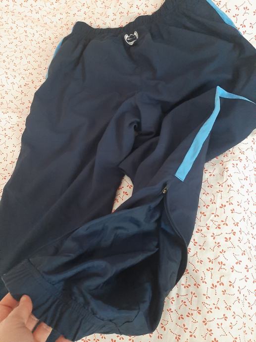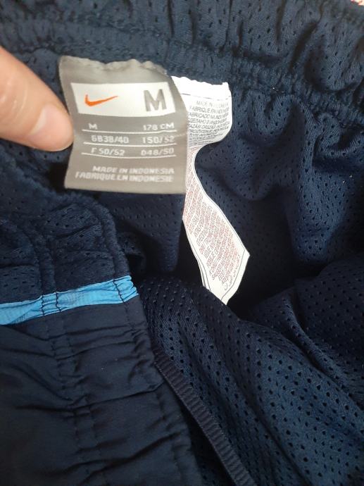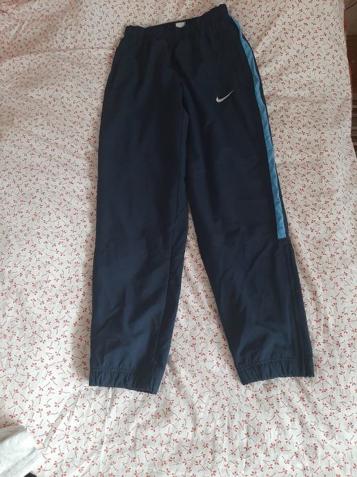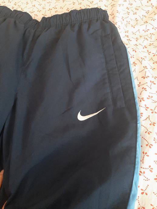 Tamoplavi donji dio muške trenirke Nike. Podstavljeni. Na kraju nogavica gumica i zatvarač. Znak Nike našiveni, vrlo kvalitetne. Nošene kratko. Bez oštećenja. Vel. M