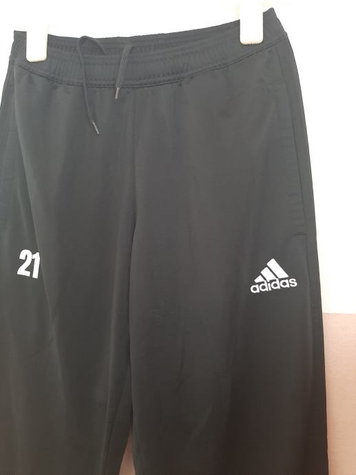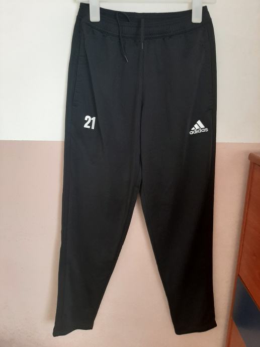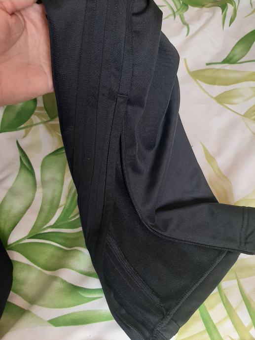 Novi crni muški donji dio trenirke Adidas. Jednom obućeni, kao novi. Na kraju nogavica zatvarač. Vel. S (36)