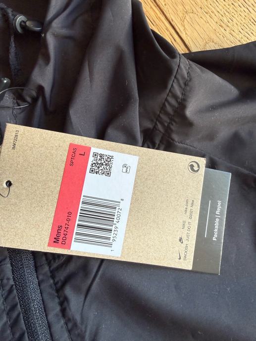 Prodajem Nike windbreaker jaknu u crnoj boji, veličina M. Jakna je potpuno nova s originalnom etiketom. Ima kapuljaču, zip zatvarač te bočne džepove. Na prsima se nalazi prepoznatljivi Nike Swoosh logo.