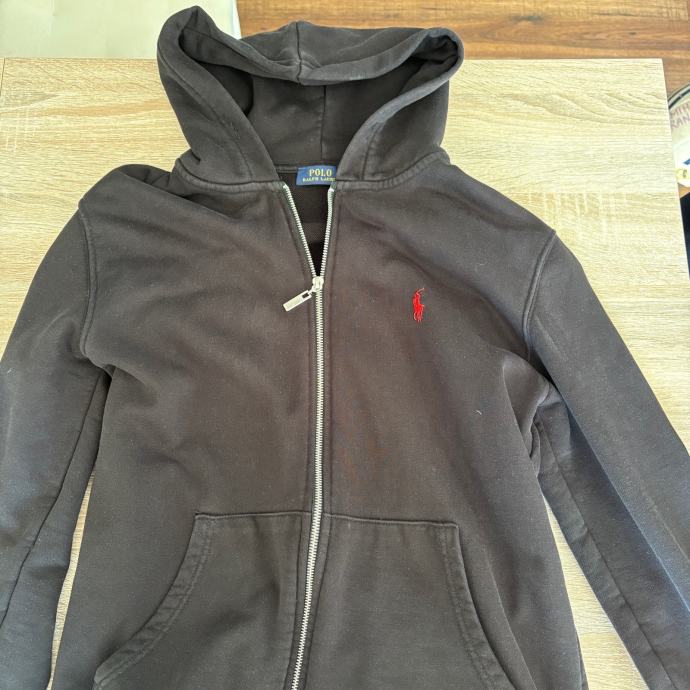 Prodajem Polo Ralph Lauren hudicu u crnoj boji, veličina L. Radi se o klasičnom modelu s kapuljačom, zipom po sredini i prednjim džepom. Na prsima se nalazi prepoznatljivi vezeni logo konjića u crvenoj boji.