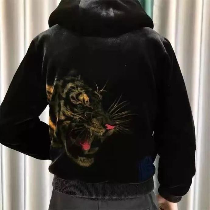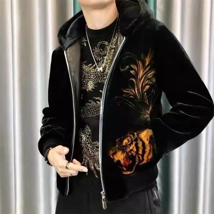 Nova muška jakna s kapuljačom za jesen i zimu 2025, kineski stil, tigrova glava plus baršun, zlatna baršunasta ležerna modna muška jakna