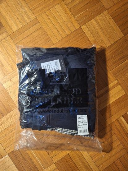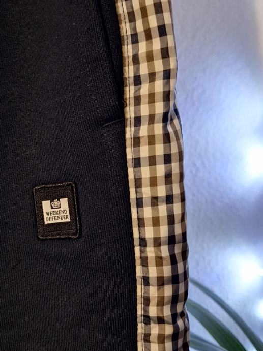 Weekend Offender tamno plave hlače s kariranim detaljem. Popuno nove s etiketom u originalnom pakiranju. Kupljene pre velike.