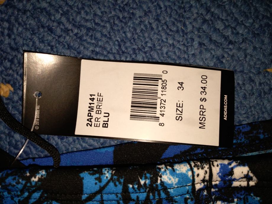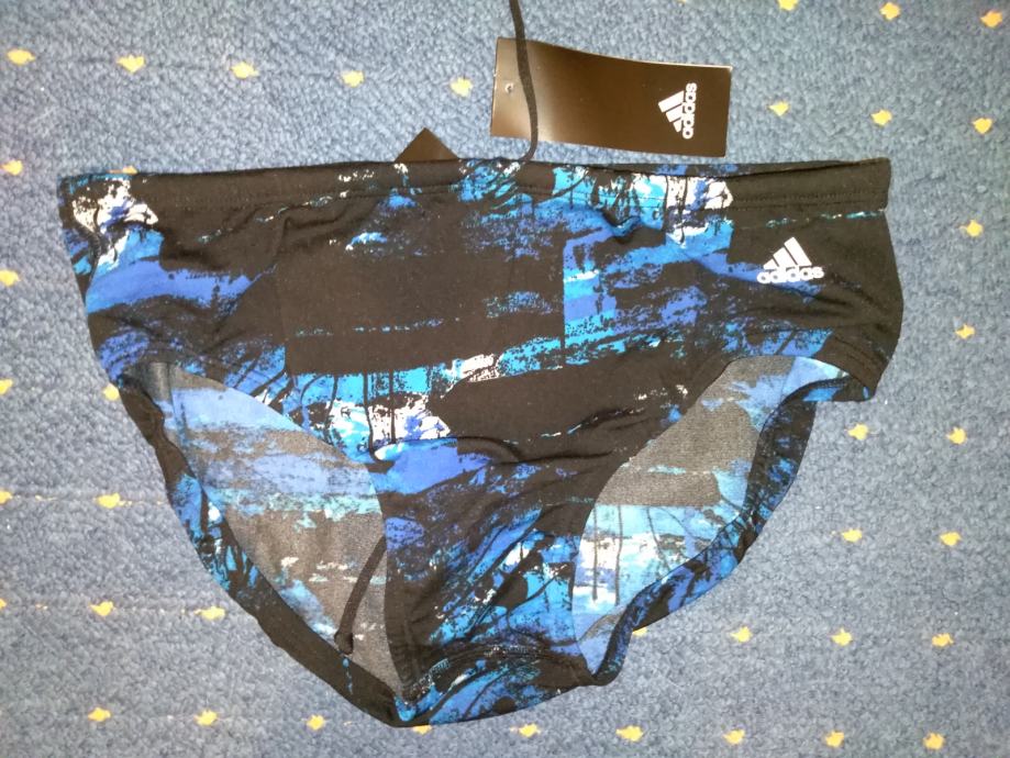 Potpuno nove crne Adidas slip kupaće s plavim uzorcima