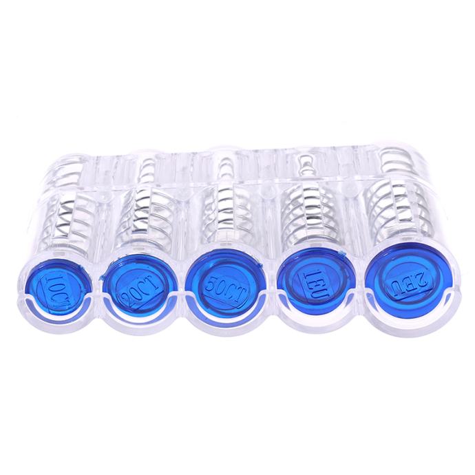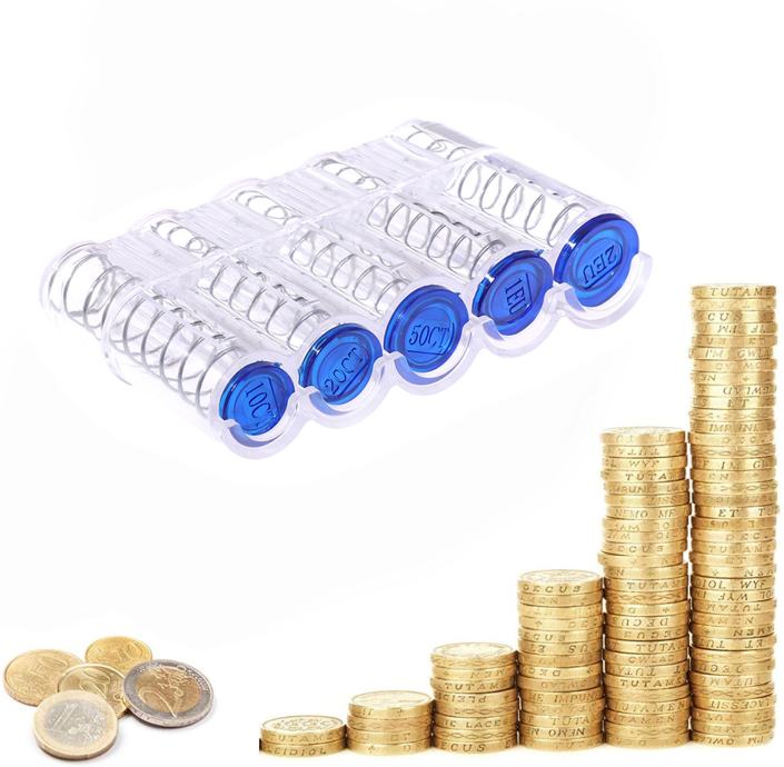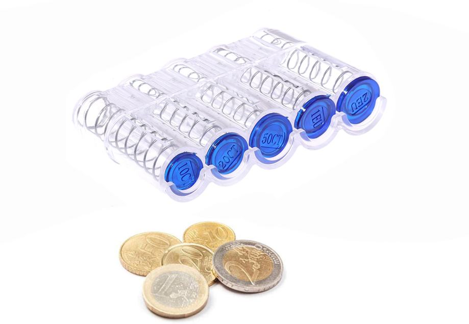 Držač za kovanice eura / organizator kovanica dostupan je u prozirnoj boji kao na slikama i crnoj