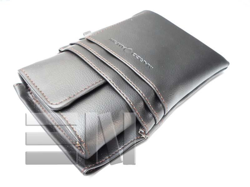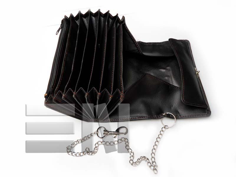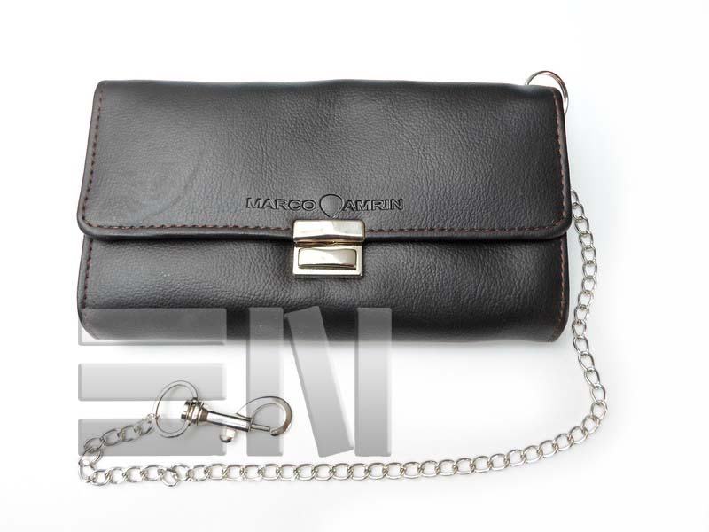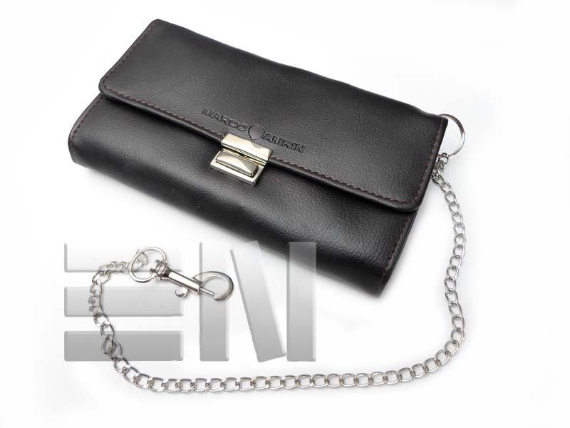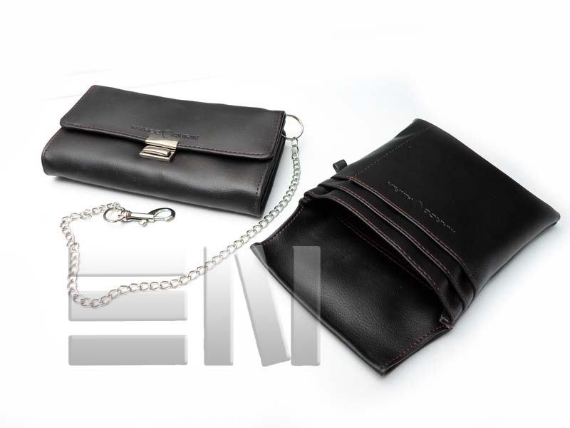 Konobarski novčanik sa futrolom, veliki broj pretinaca za papirnati novac i pretinac za sitni novac s patent zatvaračom i sigurnosnim lancem.