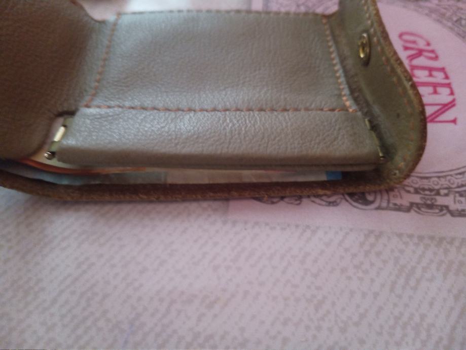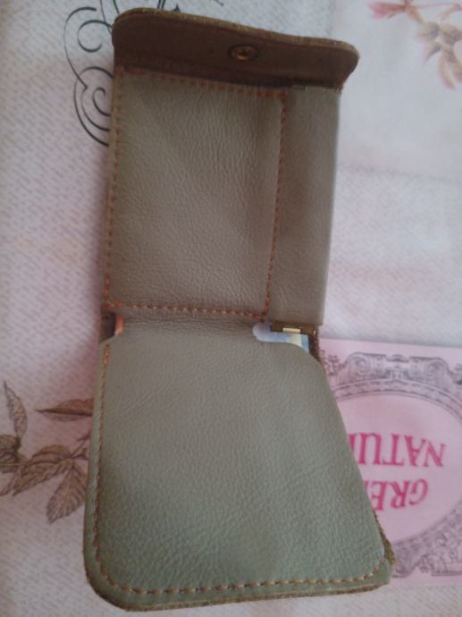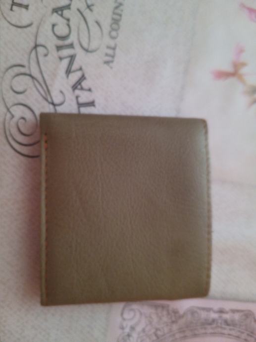 Rucno izraden kozni novcanik zabica za sitne novce i predio za papirnate. Dimenzije zatvorenog 9x8.2cm