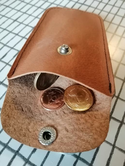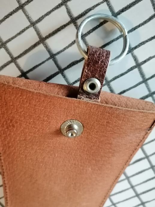 Prava koža, novo, ima pretinac ta kovanice i za ključeve ili novčanice. Može se prikvačiti za remen.