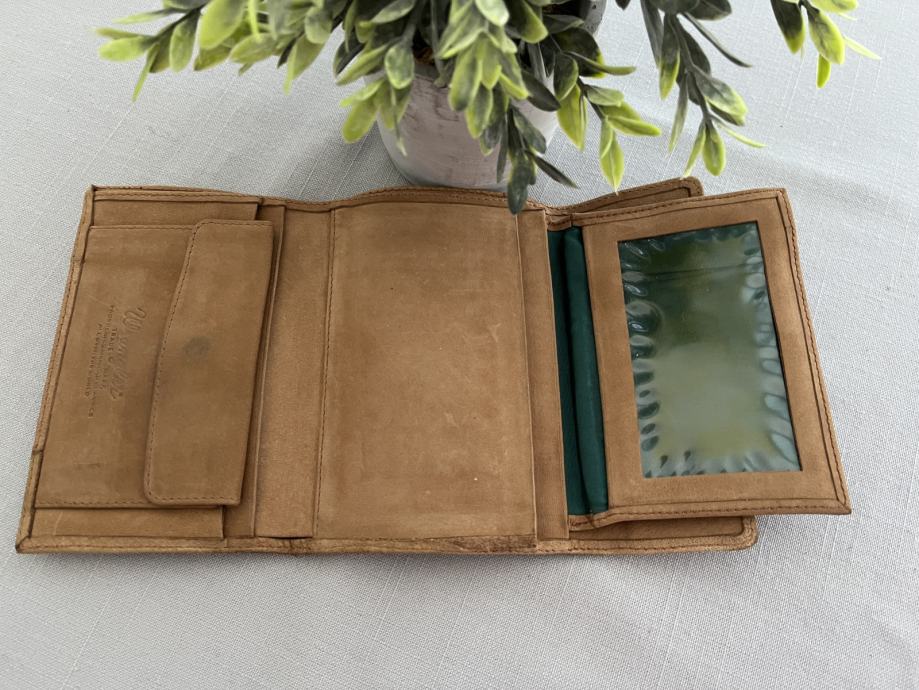 Novčanik je nošen i samo se na unutarnjem djelu par cm otparao, poslikano da se vidi. Izrazito kvalitetan , sa prepuno pretinaca, kako se vidi na slikama.