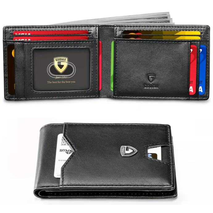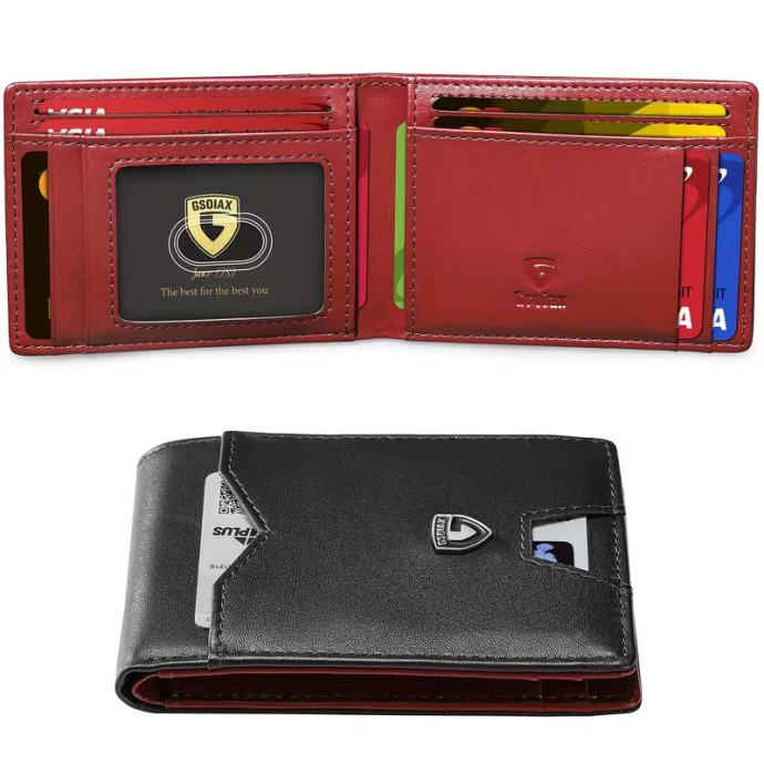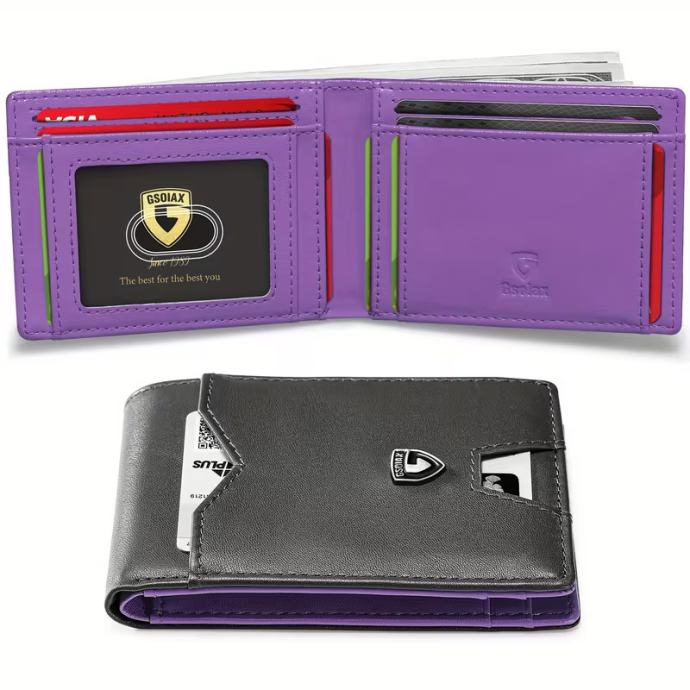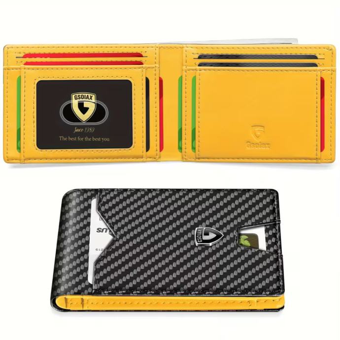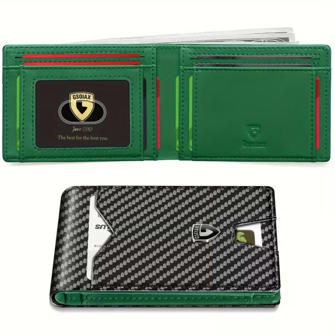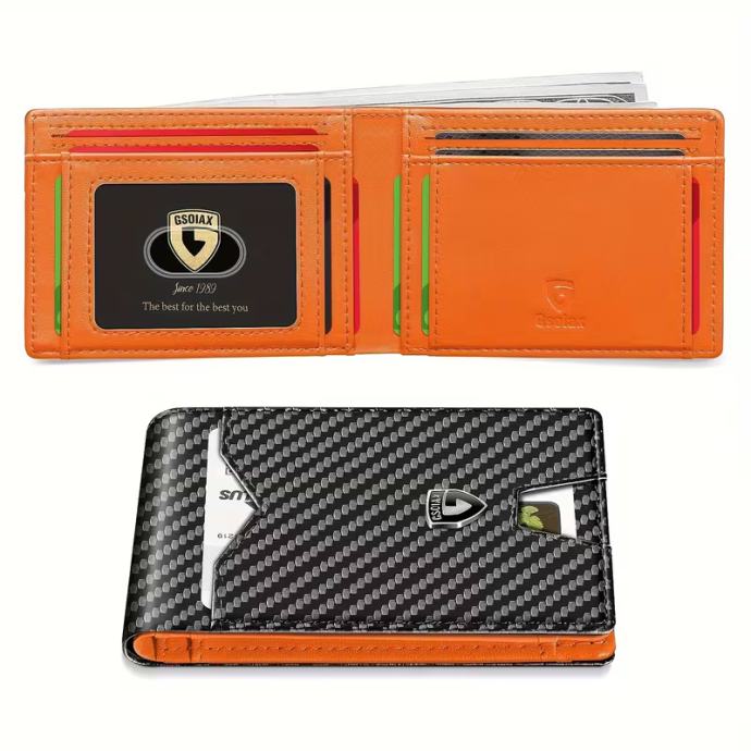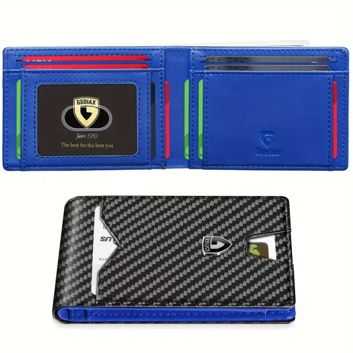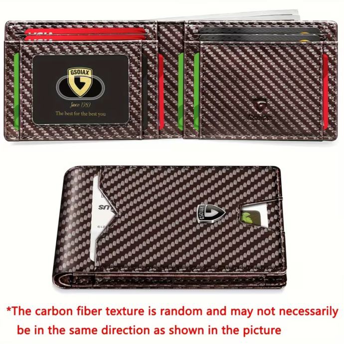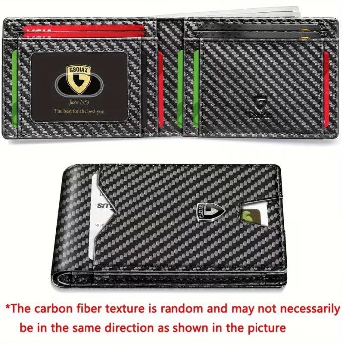 1 kom Muški tanki novčanik, minimalistički držač kreditnih kartica s uzorkom od mikrovlakana i karbonskih vlakana, s RFID blokiranjem, s poklon kutijom za Kraljev dan