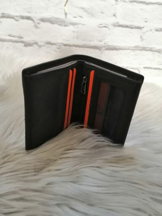 Novčanik sadrži 4 pretinaca za kartice,3 pretinca za dokumente, 2 pretinca za novčanice,1 mrežati pretinac, džep za kovanice