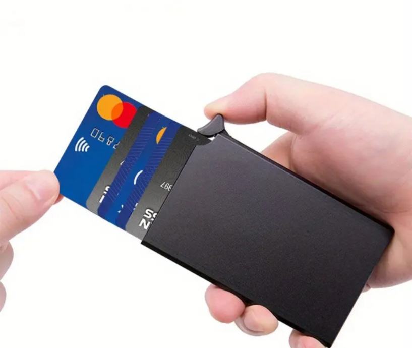 Mali aluminijski novčanik za kartice, sa pop up držačem kartica.