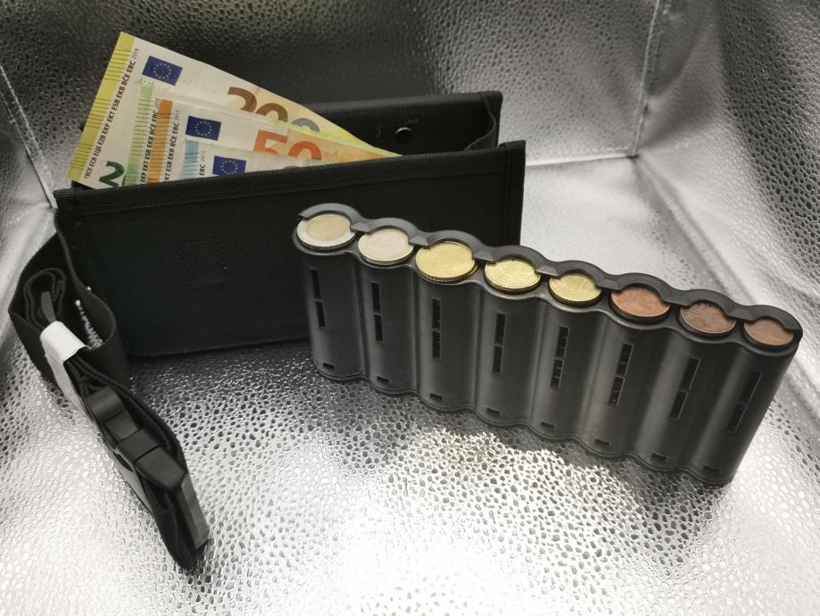 - Plastični dozator za svih 8 Euro kovanica (kapacitet kovanica oko 100 €) koji su s oprugom tako da je izvlačenje kovanica vrlo jednostavno