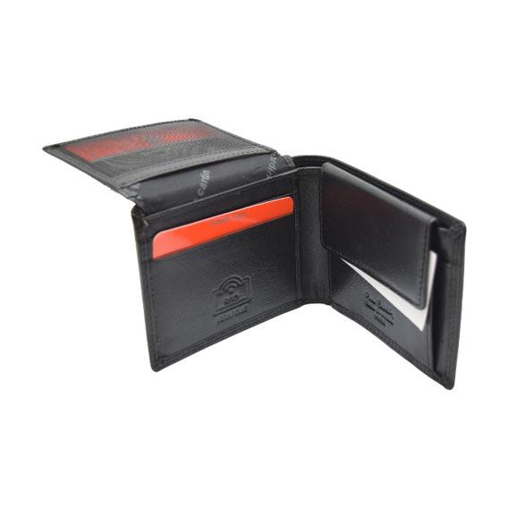 Kvalitetan muški kožni novčanik modne kuće "Pierre Cardin". Dimenzije zaklopljenog novčanika : 10,5 x 8 centimetara. Novčanik je napravljen od vrlo kvalitne prirodne kože. Novčanik posjeduje: pretinac sa pregradom za papirnati novac, džep za kovani novac, četiri džepa za kartice ili slične dokumente, jedan mrežasti providni džep i dva "skrivena" džepa veličine 8 x7 centimetara. Novčanik dolazi u poklon kutiji.