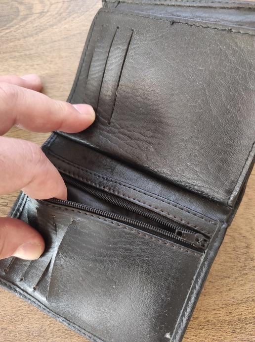 NOVCANIK od prave kože sa jako puno pretinaca, primjer za kartice ima 11 džepova,za kovanice ima sa gumbom i sa zatvaračem,novcanik je stvarno pun pretinaca i džepova.,dosta sirok,a preklopljen ima 10 cm,a rasiren 20.Najbolje pogledaj slike,ima i par skrivenih pretinaca.Saljem postom ili tiskom ili u dogovoru sa kupcem molim slati poruke na Viber ili njuskalo ili nazovite.Novcanik nije korišten ali stoji u kutiji dvije godine,nema nikakvih ostecenja kao sto se vidi na slikama