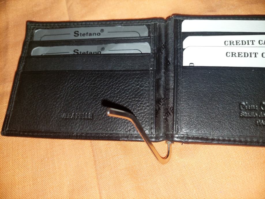 Novcanik sa oprugom,novo,crne boje,6 pretinaca za kartice ,pretinac za sitan novac,opruga drzi papirnati novac,vidi slike