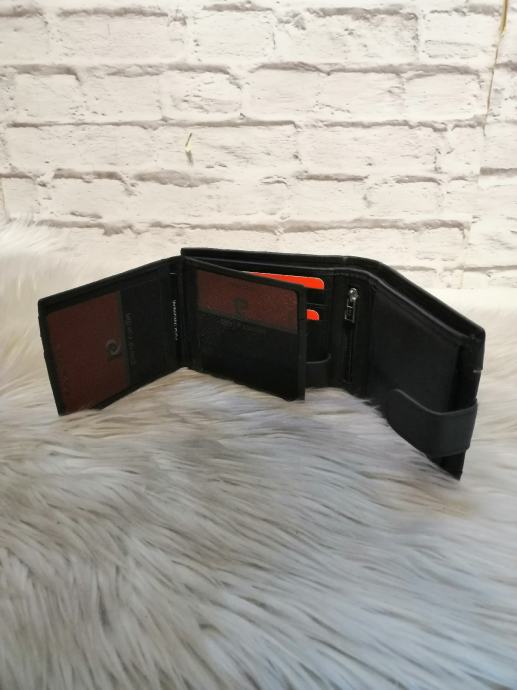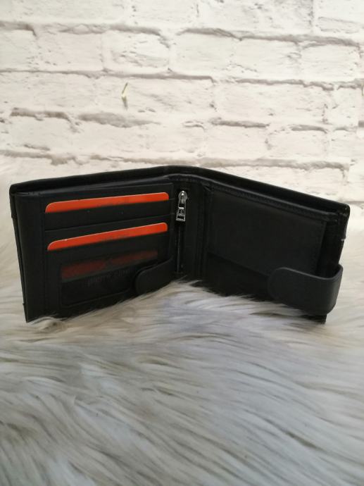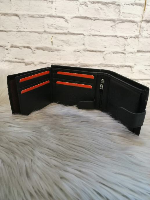 Novčanik sadrži 9 džepiča za kartice,2 mrežnata pretinca,jedan pretinac za dokumente,jedan pretinac skriveni na zatvarač,2 pretinca za novčanice,pretinac za kovanice.